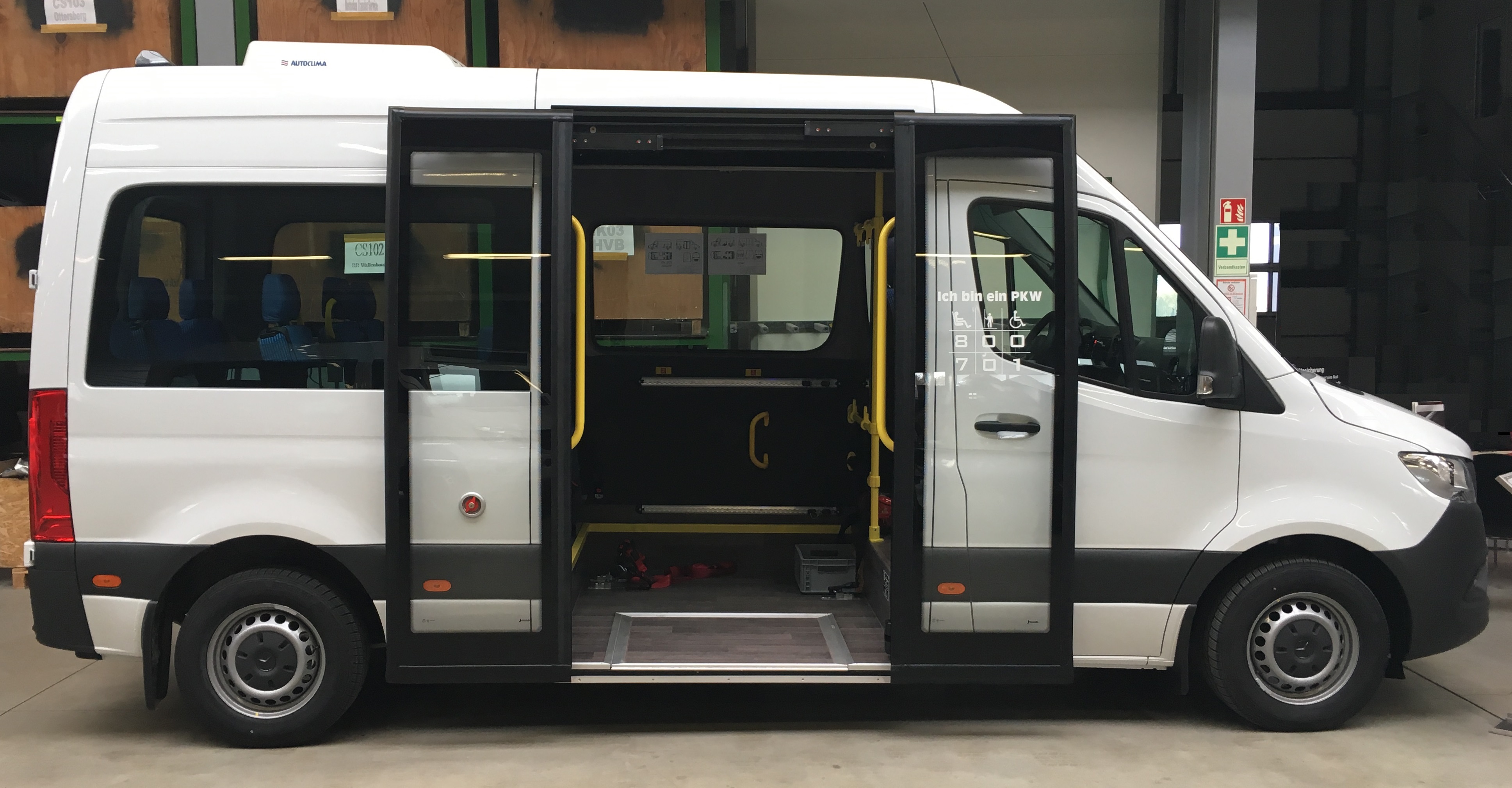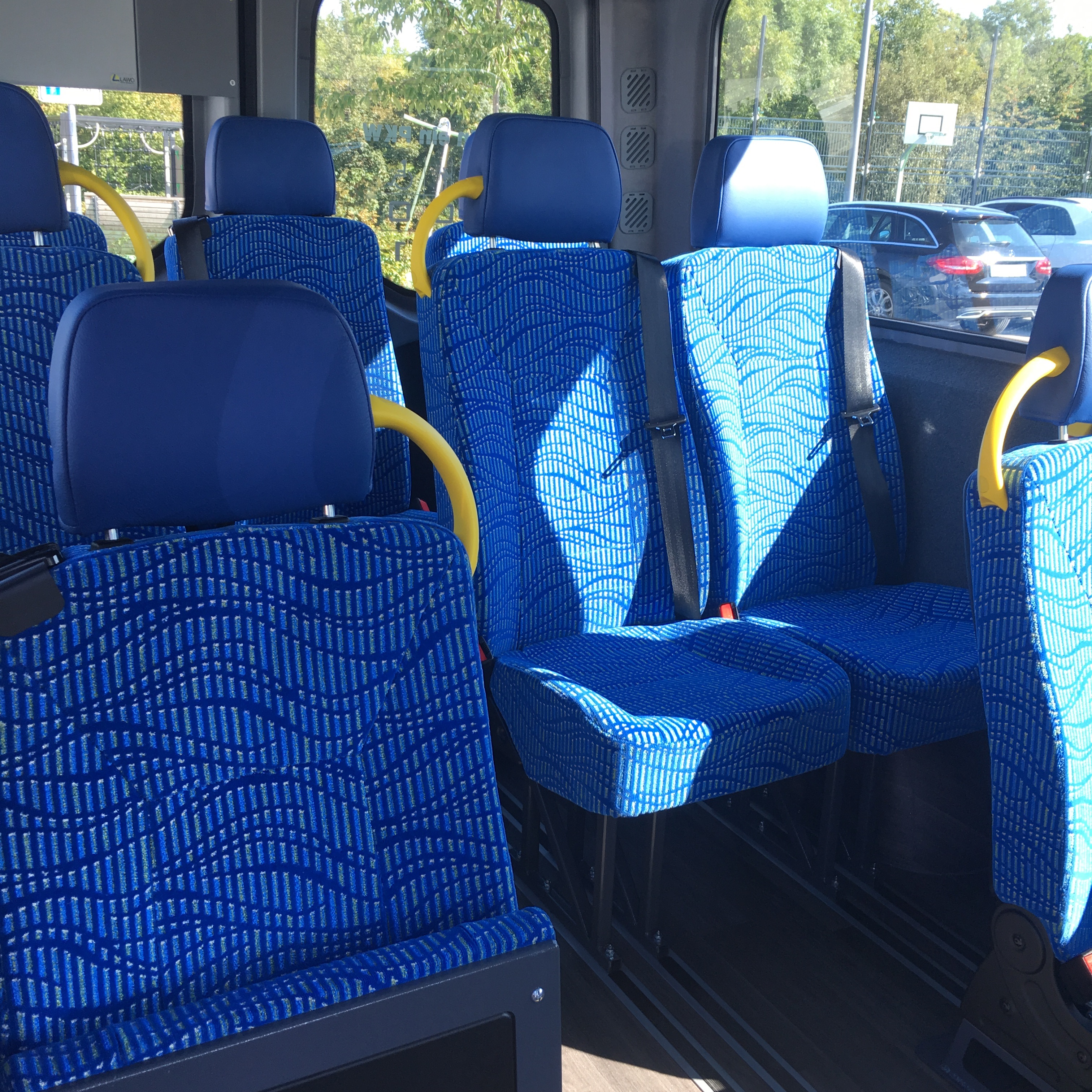 Dieser Bürgerbus hat 8 Fahrgastplätze und einen Fahrerplatz. Anstelle der 8 Fahrgäste können auch 7 Fahrgäste und 1 Fahrgast im Rollstuhl befördert werden.
